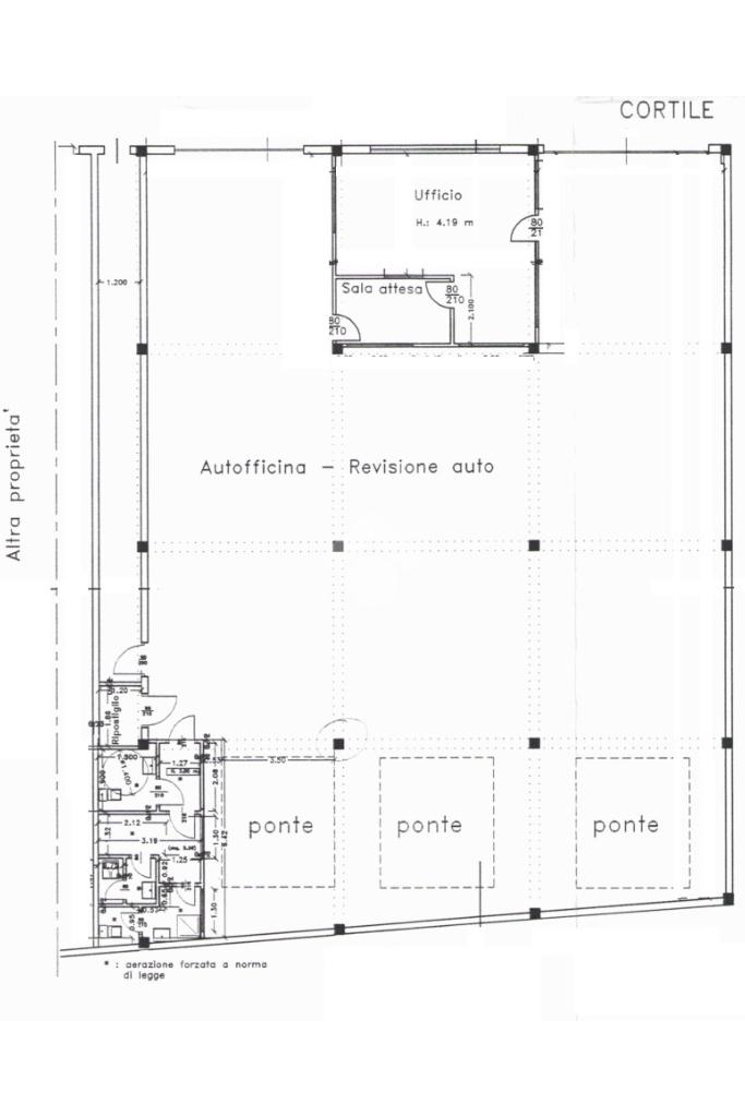 capannone industriale interno cortile di 480 mq ca. con due comodi ingressi carrai, zona lavorazione, uffici e servizi.