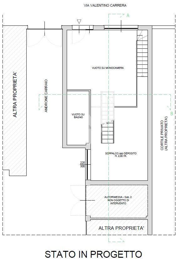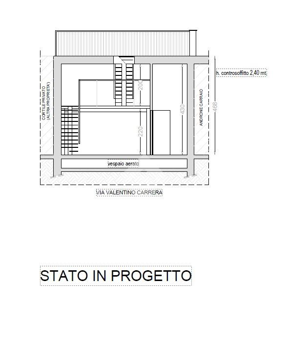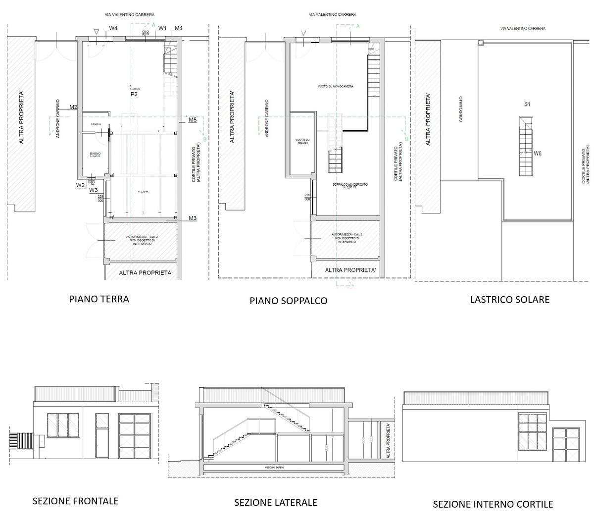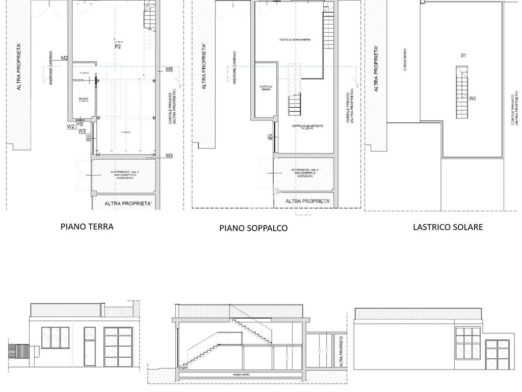 Il progetto prevede, grazie alla generosa altezza interna di 4,30 mt, la realizzazione al piano terra di un’ampia zona giorno con ingresso living e cucina a vista, zona notte e bagno; la prima scala interna a vista porta tramite una balconata a sfioro sul soggiorno all’ampio soppalco; la seconda scala interna permette l’accesso al lastrico solare pienamente sfruttabile attraverso ampio lucernario apribile.