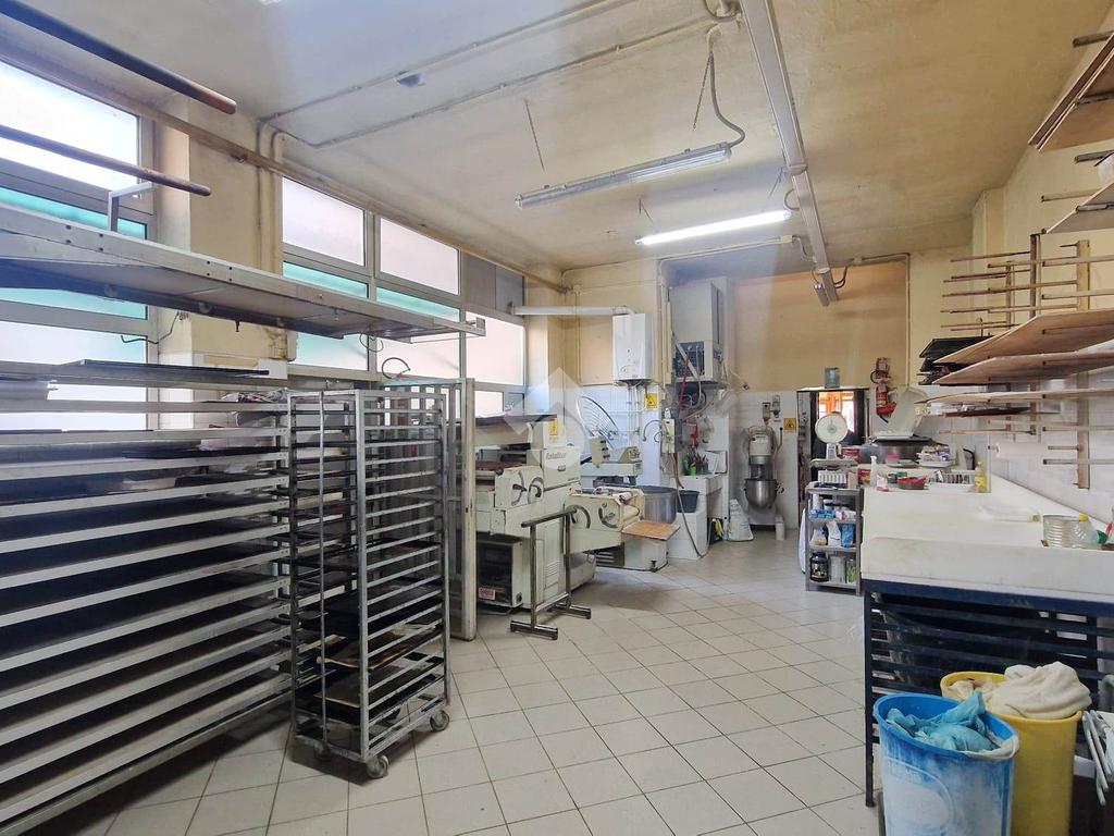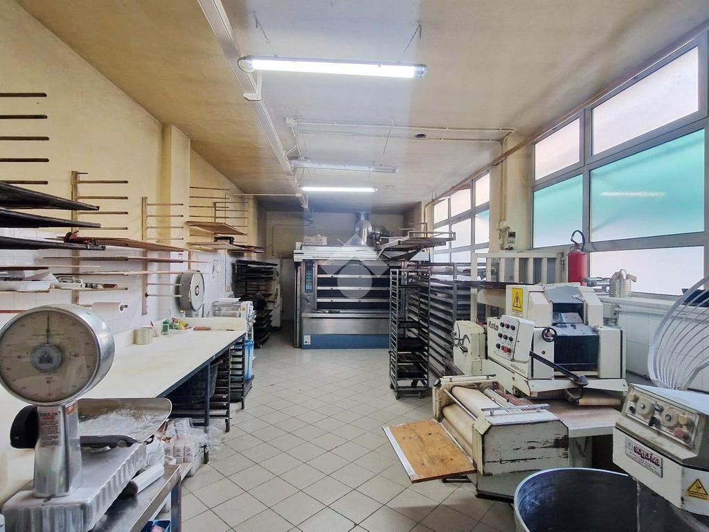 locale commerciale locato da attività storica di panificazione composto da un negozio di 2 vetrine, un laboratorio e un'autorimessa nel cortile.